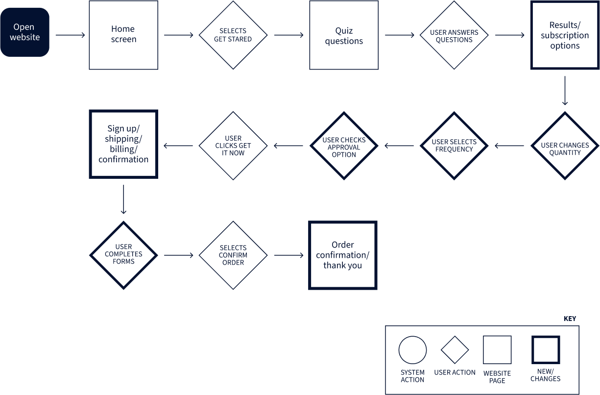 Based on the insights from my user research, I developed personas with specific goals and frustrations in mind. These include people using subscription services for the price, users appreciating the convenience of subscriptions, users not wanting to keep track of another monthly fee, and users ending up with too much product.
