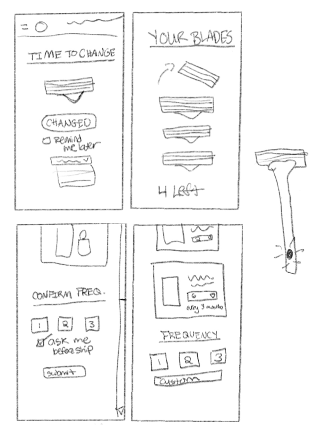 My first idea was to set up a reminder system for the user to change their blade. This would address the issue of people not changing their blade frequently enough, resulting in excessive product accumulation.