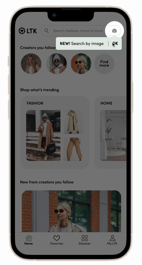 Quickly and easily search for products by uploading a photo from their camera roll or taking a photo directly in the app.